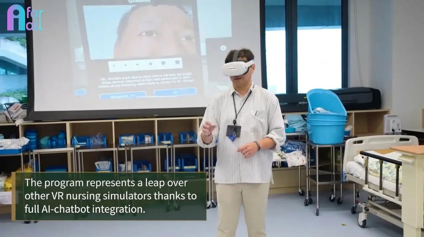 Nursing students thrive when given opportunities for hands-on, contextual learning that mirrors real clinical environments. In the simulated program, nursing instructors were created as humanoid avatars, i.e. NPCs, who interact with the nursing students in the virtual clinical environment. AI technology is integrated into the nursing instructor avatars and virtual environment to provide realistic responses and feedback much like in real life clinical handover scenarios. These virtual simulations enable nursing students to safely cultivate robust communication skills in clinical handover scenarios such as using structured frameworks including ISBAR (Identification, Situation, Background, Assessment, Recommendation), in order that these skills can be applied to their real-life counterparts.